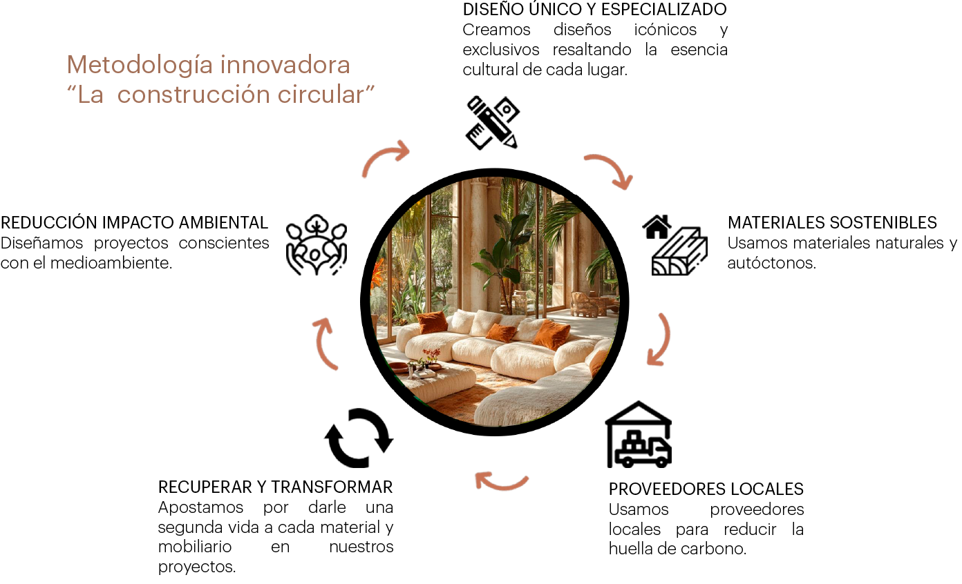 Estamos especializados en interiorismo sostenible, construcción circular y consultoría hotelera para casas rurales, hoteles boutique y villas de lujo, garantizando resultados excepcionales y ofreciendo un servicio integral en cada proyecto.